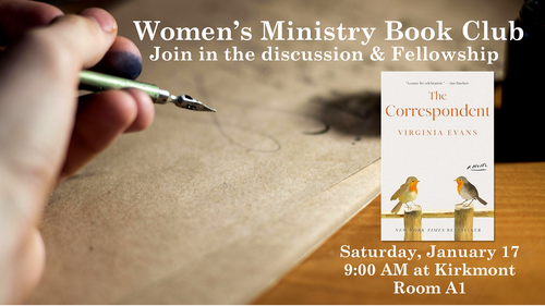 Join us on Saturday, January 17, 2026, at 9:00 AM in A1 as we dive into The Correspondent by Virginia Evans. This gem of a novel explores the comfort we find in good books and the surprising connections we can form with people we may never meet in person. Come enjoy warm conversation, fresh insights, and a story that lingers long after the last page. All are welcome!