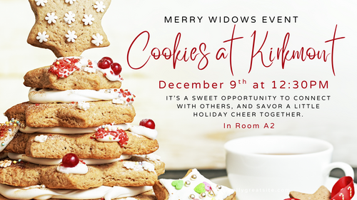 Come enjoy an afternoon of Christmas cookies and fellowship on December 12 at 12:30pm in Room A2 at Kirkmont!